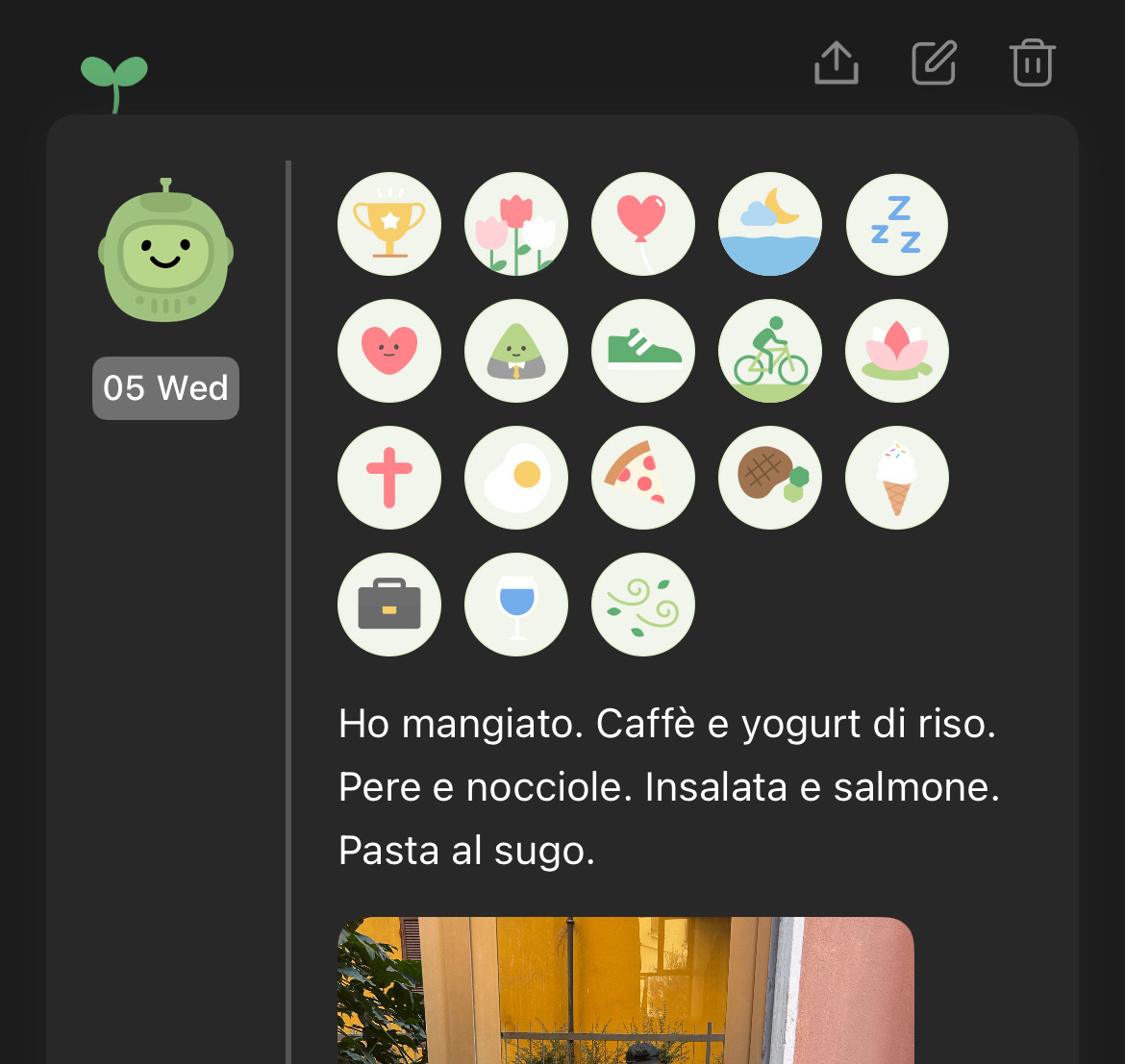 PS. Non so se vi ho detto che uso una app per tracciare i miei stati d’animo, si chiama Daily Bean e si può scrivere dentro ad ogni giorno tutto quello che hai fatto, mangiato ecc. Vi lascio un esempio